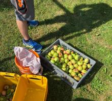 Frau Orth aus Kleinlinden hatte angeboten, dass die Teilnehmenden in ihrem privaten Garten vorbeikommen sollten, da sie die anfallenden Mengen allein gar nicht bewältigen könne.