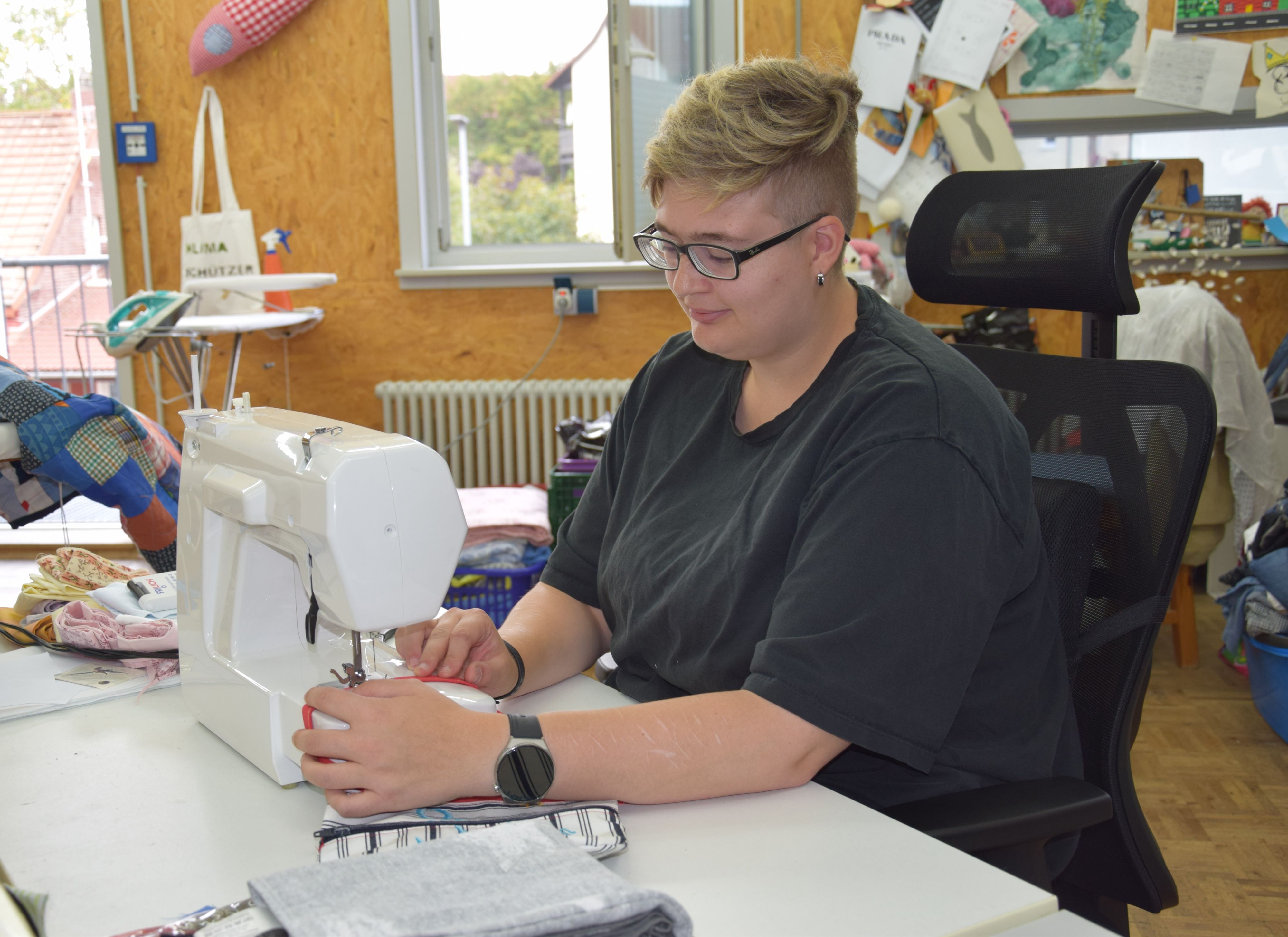 Während Nina, die sich immer noch über ihren Stuhl freut, gerade eine Tasche fertigt, produziert ein anderer Teilnehmer Taschen aus alten Hemden, andere fertigen Postkarten als Einzelstücke für den diesjährigen Weihnachtsmarkt auf dem Gießener Kirchenplatz. Es herrscht eine konzentrierte Arbeitsatmosphäre an diesem Freitagmorgen.