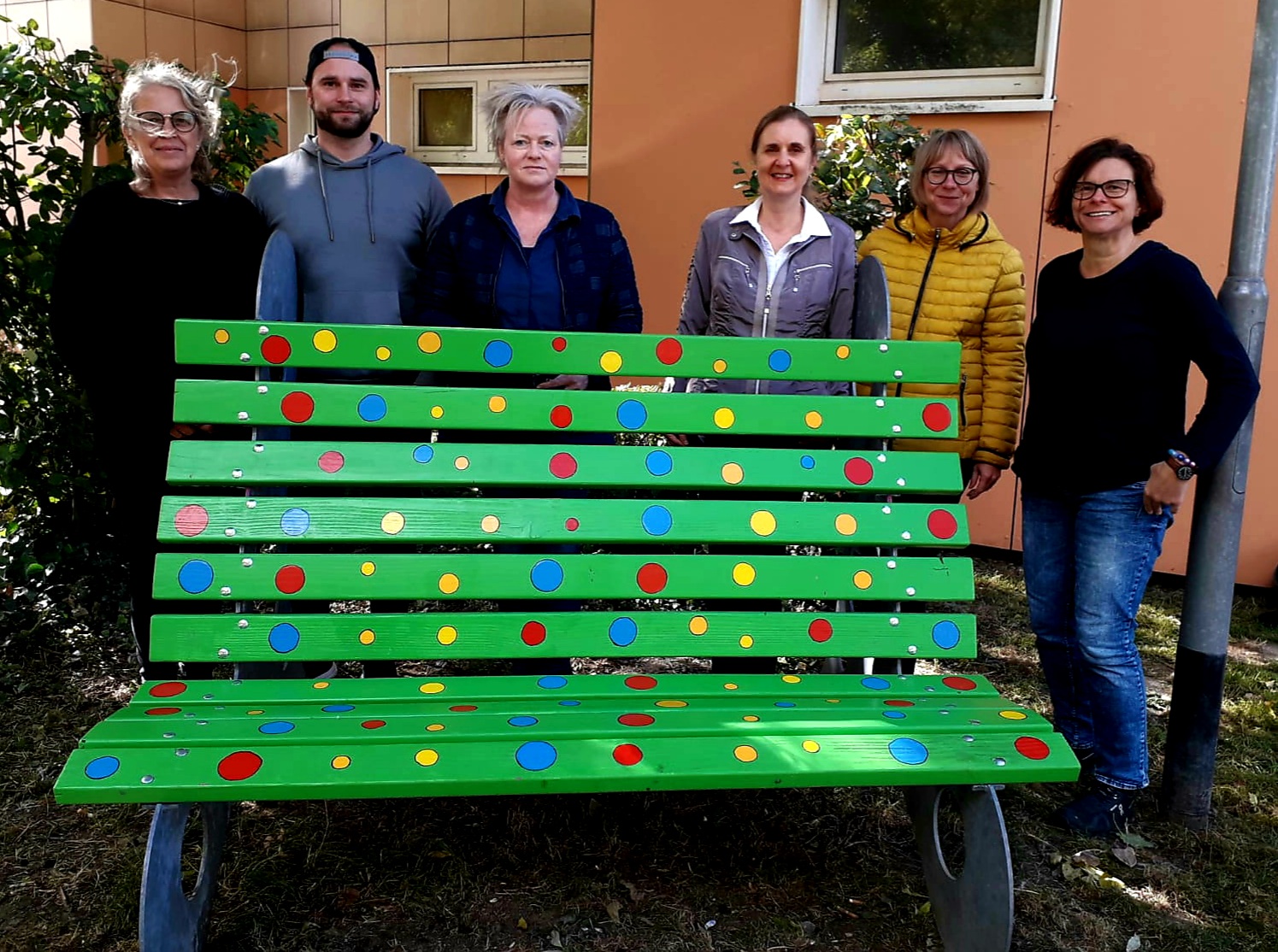 Die ersten Lackierarbeiten vollführte das BIWAQ-Projekt während der Einweihung des Stadtteilbüros auf dem Außengelände der Pater-Delp-Straße 24. Dann kam Corona und brachte das öffentliche Leben zum Erliegen. Diesen Sommer nun endlich wurde ein Platz vor dem Gebäude gefunden und mit tatkräftiger Unterstützung unserer Metaller*innen der Transport durchgeführt.