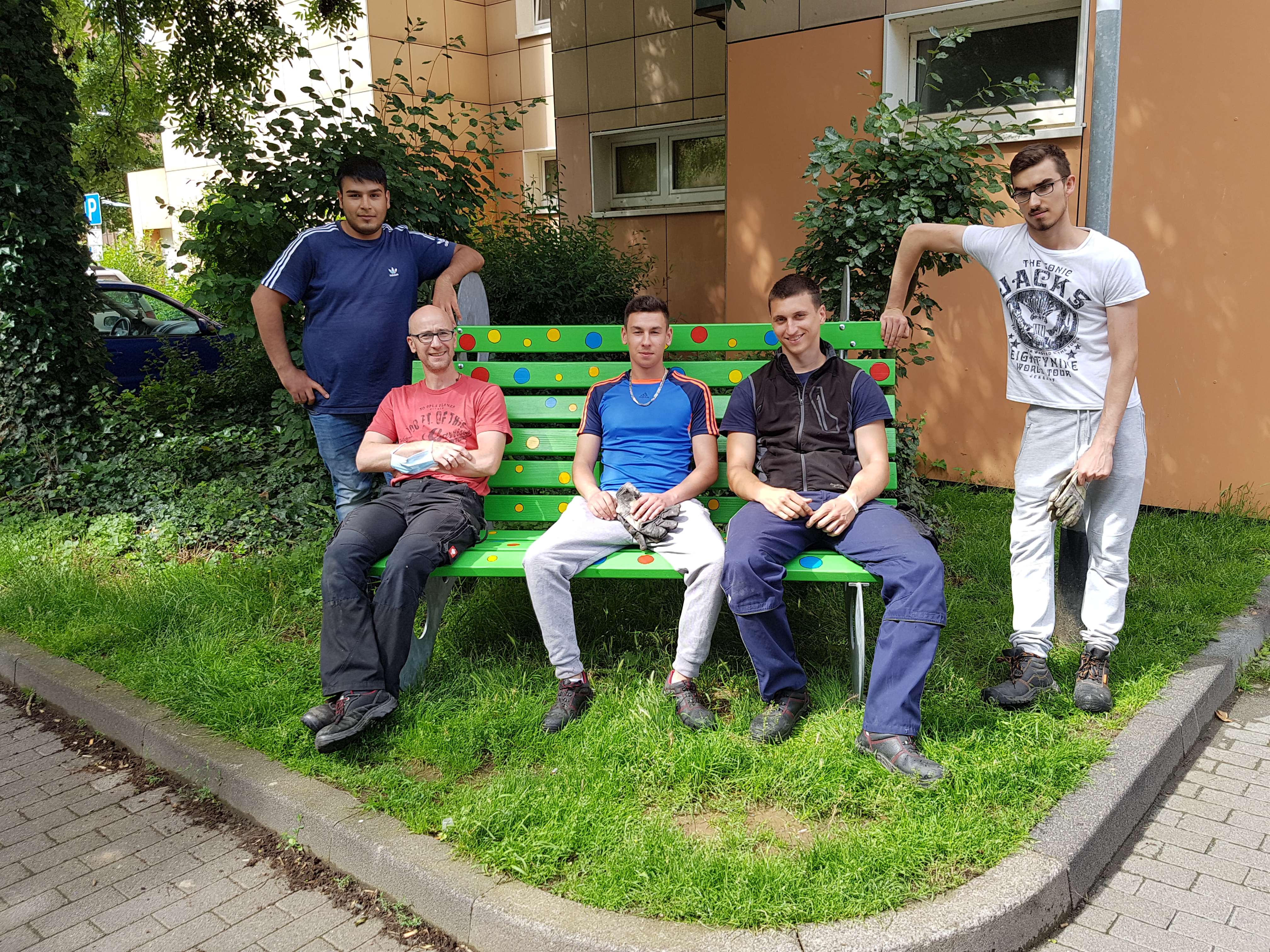 … ist ein gemeinsames Upcycling-Projekt der Projekte BIWAQ und JUGEND STÄRKEN im Quartier. Einst gebaut von unserer Metallwerkstatt anlässlich eines städtischen Jubiläums kam sie zu Restaurierungsarbeiten wieder zurück auf das Gelände der Jugendwerkstatt. Ausbesserung an der Lattung wurden durchgeführt von den Jugendlichen aus dem JustiQ Programm.