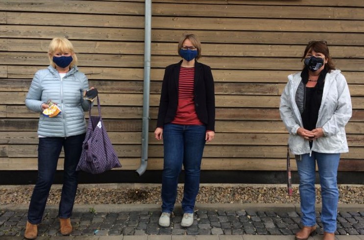 Erster Abnehmer war das Evangelische Krankenhaus, dem am 08. April genähte Gesichtsschutze zur Verfügung gestellt wurden, um das medizinische Personal zu unterstützen.