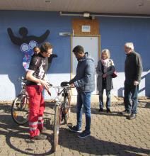 Heidi und Helmut Haas aus Biebertal sind im Unterstützerkreis für das Flüchtlingswohnheim in Rodheim-Bieber engagiert und hatten die Initiative angestoßen. Das Ehepaar brachte zur heutigen Übergabe zwei junge Männer aus dem Wohnheim mit, die die Räder mit Dank entgegennahmen und den Heimweg sogleich auf ihrem neuen Transportmittel antraten. Gerade für Flüchtlinge, die nicht im Gießener Innenstadtbereich untergebracht sind, ist ein Fahrrad ein wertvolles Mittel für mehr Mobilität und Unabhängigkeit im Alltag.