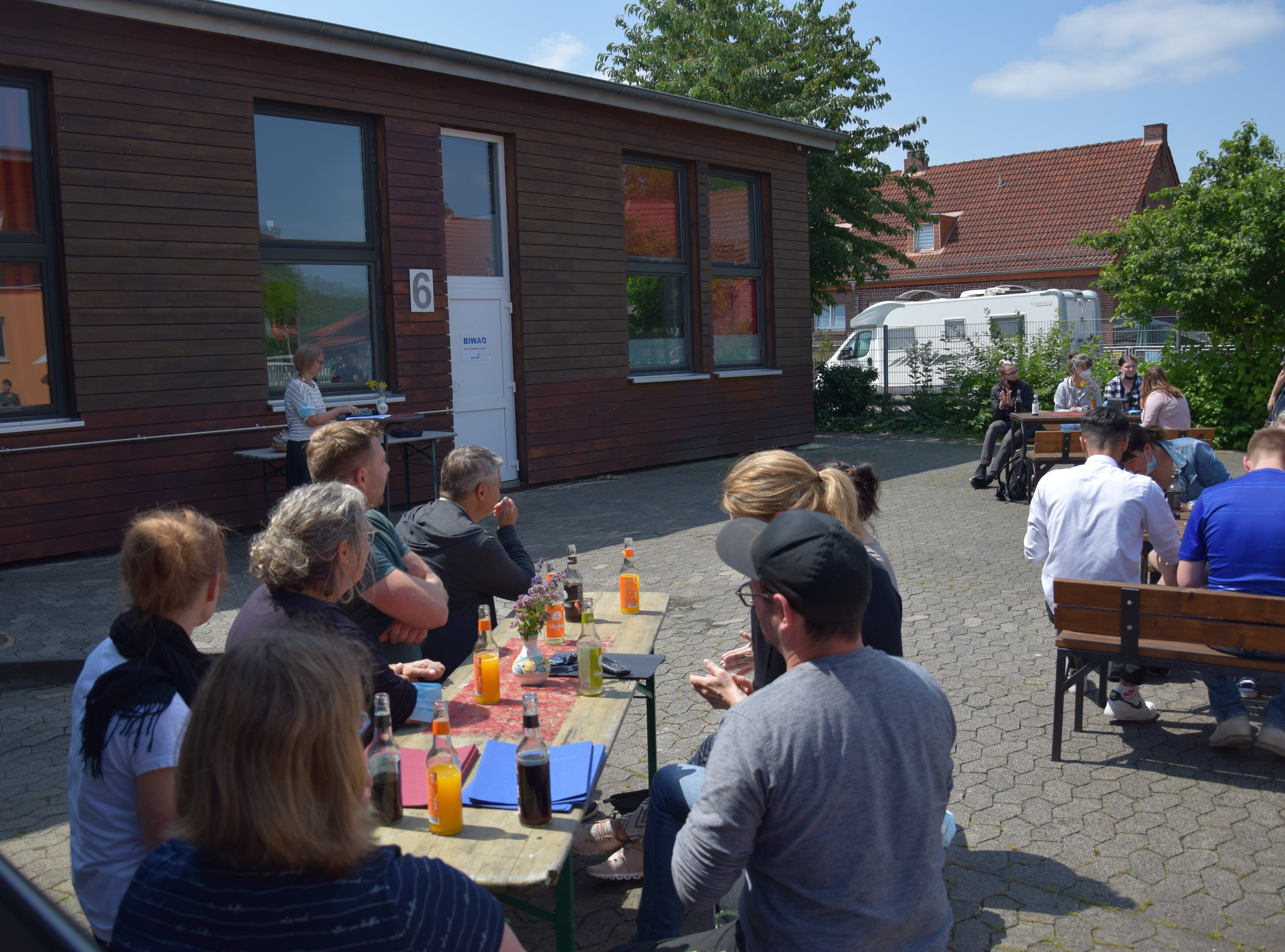 Die Stimmung war gelöst, es wurde zusammengesessen und gelacht. Die Freude über den Erfolg nach gemeinsamer Anstrengung war in den Gesichtern abzulesen. Die Möglichkeit bei gutem Wetter feierlich zusammenzukommen tat ihr Übriges.