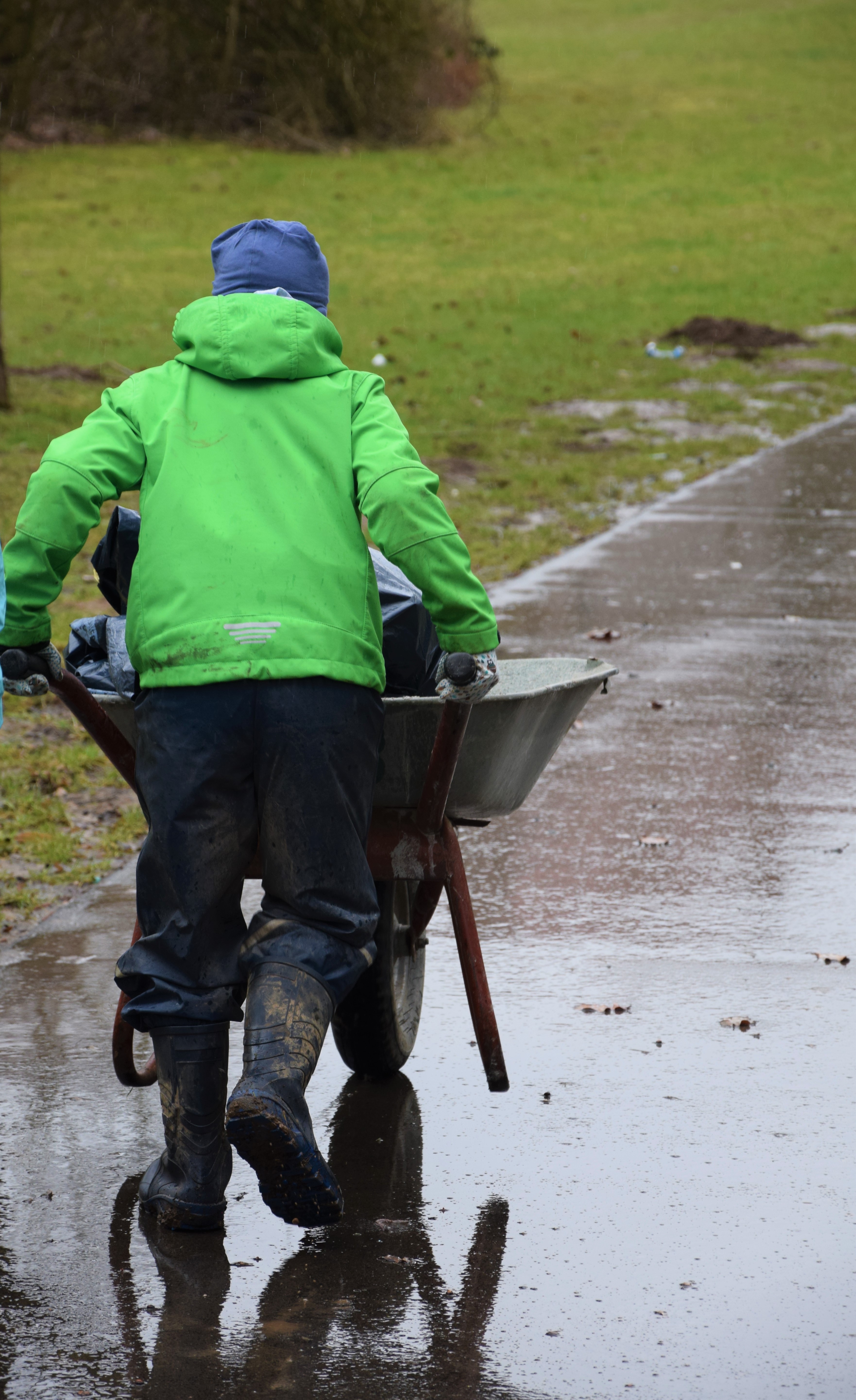 Mit dabei waren der FSV Rot West Gießen e.V., die Grüne Jugend Gießen, Jugendtreff Holzpalast, der SPD-OV-Gießen-West, die evangelische Stephanusgemeinde, das BIWAQ-Team der Jugendwerkstatt und Privatpersonen aus dem Quartier. Besonders die Jüngsten waren in ihrem Sammeleifer freudig anzusehen, wie sie in Regenhosen durch den ab 11 Uhr einsetzenden Starkregen stapften und die Umwelt von Müll befreiten, denn dieser sei „Umweltverschmutzung“. Ein Sechsjähriger beschrieb die Motivation an diesem Tag mitzumachen damit so: „Oma hat gesagt, wir sollen die Welt retten“.
