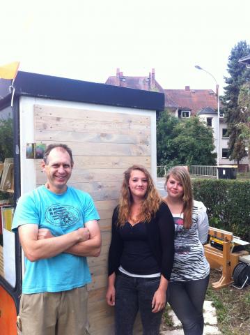 Berufsvorbereitung im Holzbereich baut Tür aus RecyclingmaterialDie beiden jungen Frauen, die derzeit fachliche Erfahrungen in unserer Holzwerkstatt sammeln, konnten heute eines ihrer Projekte "in die Freiheit" entlassen. Mit ihrem Fachanleiter Waldemar Hehn bauten Sie eine neue, maßgefertigte Tür für den öffentlichen Bücher-Tauschschrank im Free School Garten der Moltkestr.11 ein. Die Tür wurde - wie vieles in unserer Holzwerkstatt - komplett aus recyceltem Holz geschreinert und besonders wetterfest gemacht, damit ihr nicht das gleiche Schicksal blüht wie der bisherigen Tür, die dem Wetter nicht mehr standgehalten hatte. weiterlesen ... |