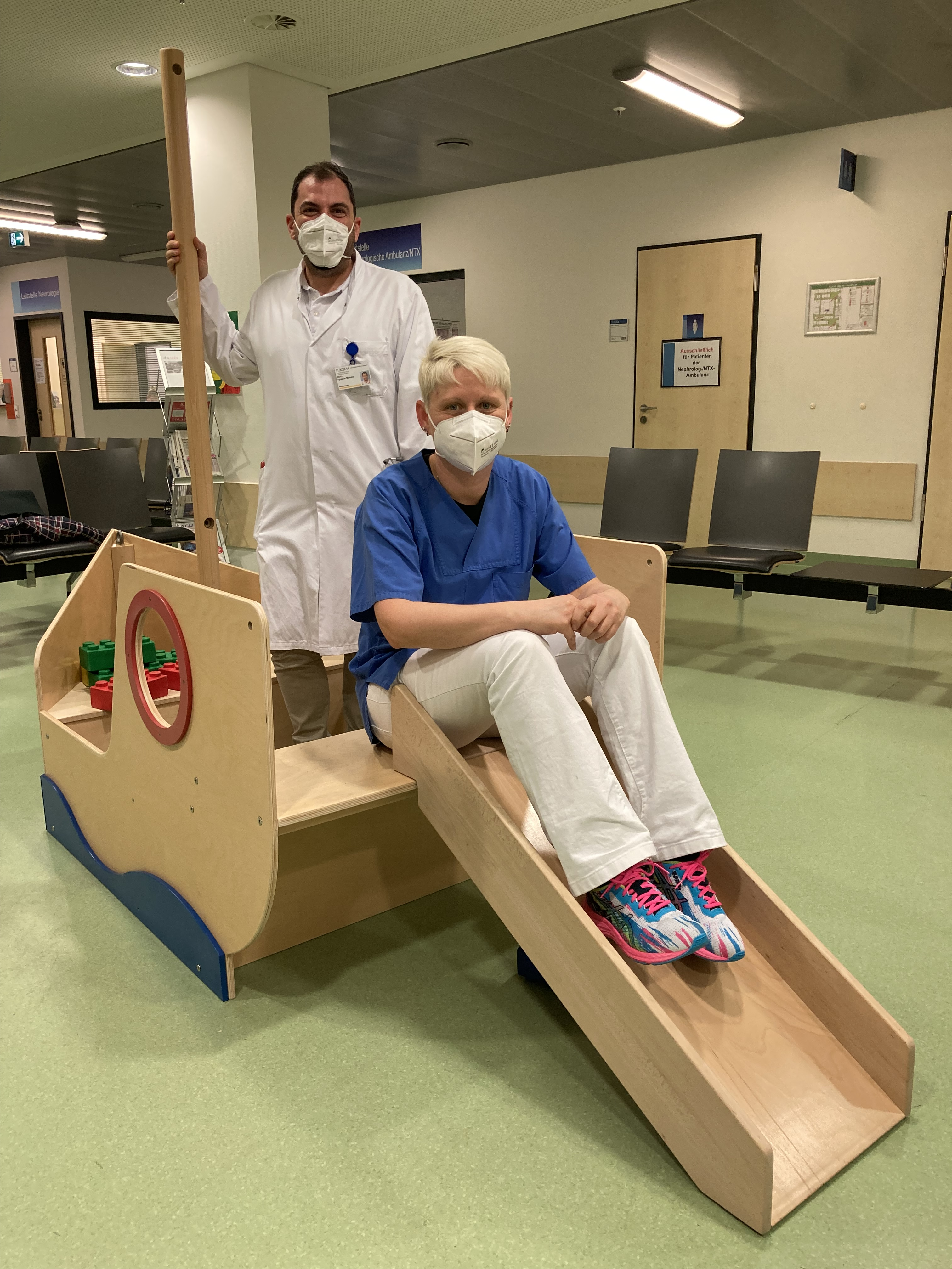 Auf Anfrage vom UKGM hat die Holzwerkstatt der Jugendwerkstatt Gießen gGmbH das Kinderschiff der Kinderneurologiestation wieder fit gemacht.