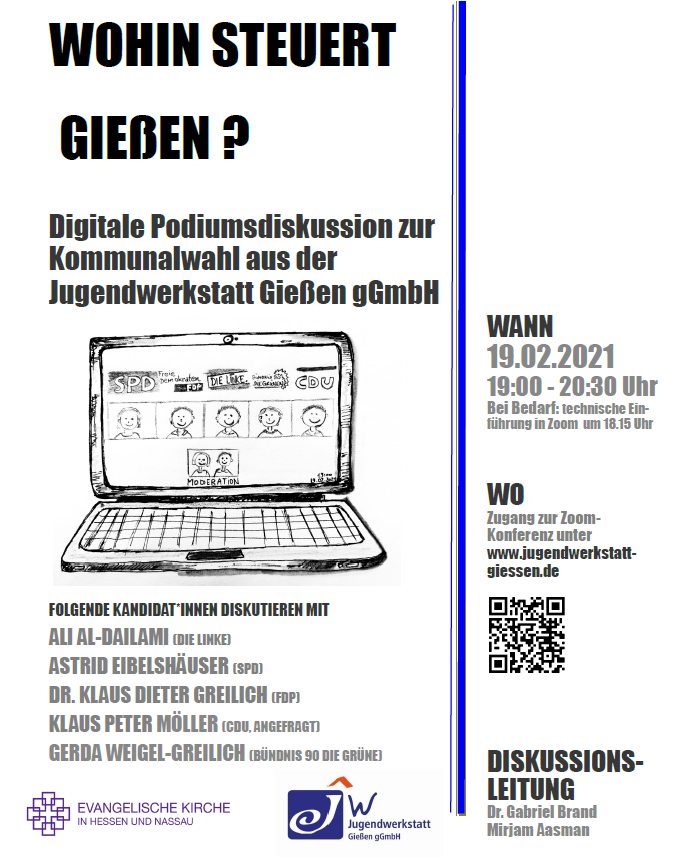 Am Abend des 19.02.2021 trafen im digitalen Raum über sechzig Menschen aufeinander. Mit einer Schweigeminute für die Opfer des rassistischen Anschlags vom 19.02.2020, die Dekan Witte-Karp einleitete, begann die Podiumsdiskussion zum Thema "Wohin steuert Gießen?".