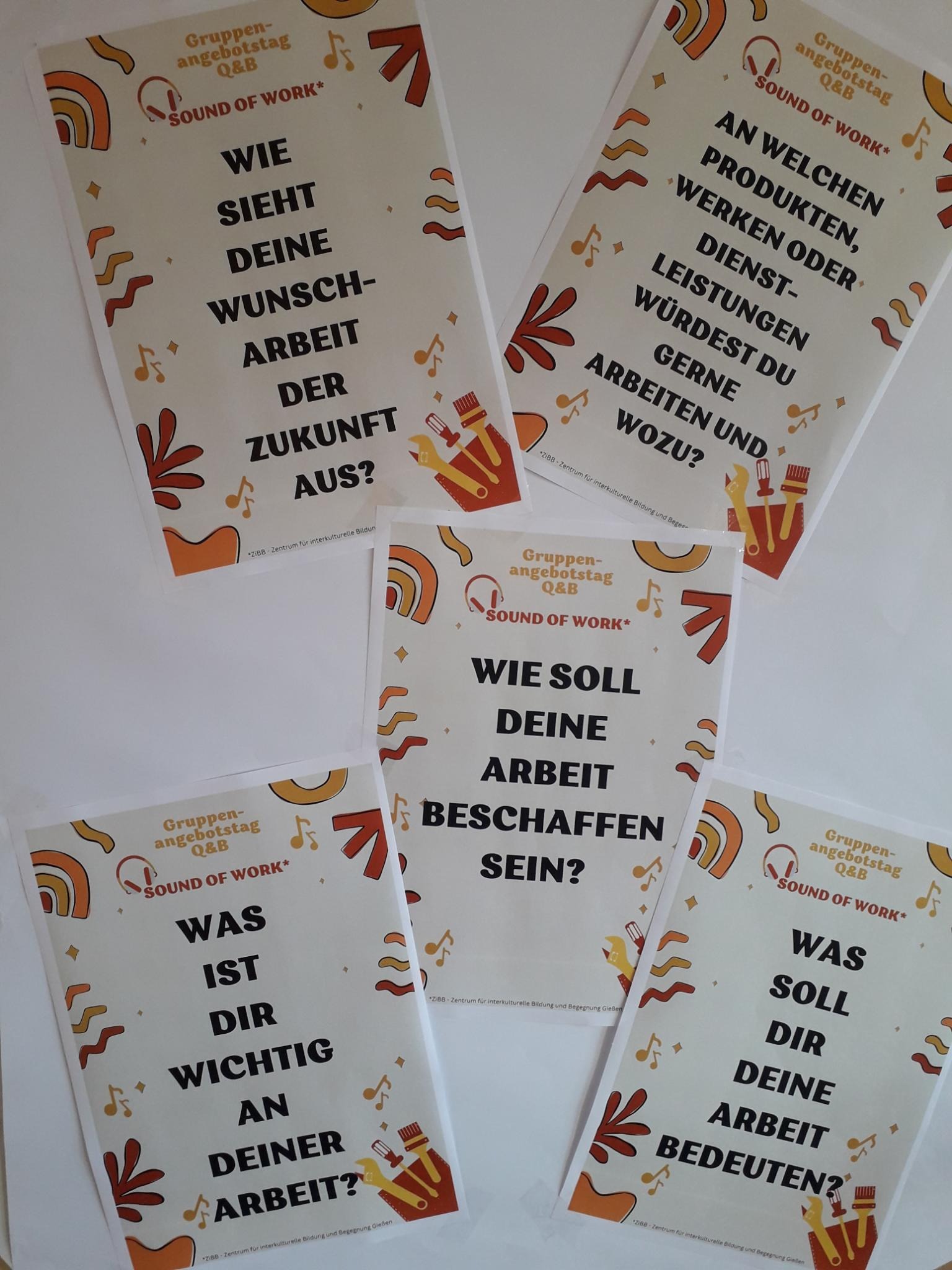 Im Oktober beteiligte sich die Gruppe aus insgesamt 27 jungen Menschen zwischen 16 und 26 Jahren am Projekt "Sound of work - Musik-Performance-Workshop" des ZIBB. An einem Arbeitstag beschäftigte sich die Gruppe kreativ mit dem Thema Arbeit. Dazu sammelten sie Ideen, was Arbeit für sie bedeutet, nahmen verschiedenste Geräusche in den acht Arbeitsbereichen auf, versuchten, diese zu erraten und setzten sich beim Schreiben mit ihrer Wunscharbeit der Zukunft, z.B. als Profi-Drifter oder Streicheleinheitengeber*in auseinander. Die Sounds und Texte wurden im Anschluss dem ZIBB für das von Ihnen initiierte Projekt zur Verfügung gestellt.