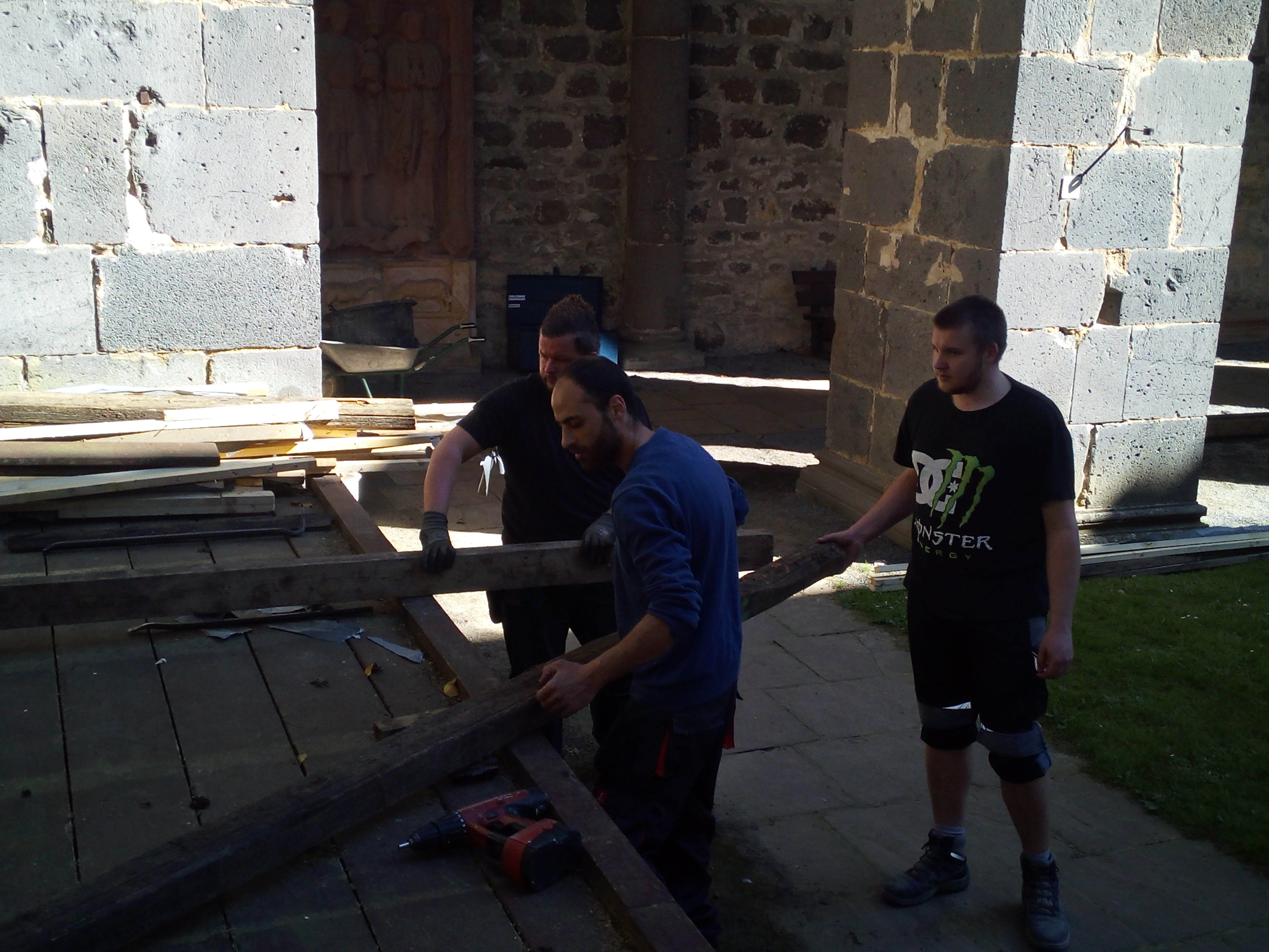 Für den Gottesdienst hat die Abteilung für Holz- und Bautenschutz der Jugendwerkstatt ein neues Kreuz aus Holz angefertigt und den Rückbau der durch Pilzbefall geschädigten Bühne durchgeführt.