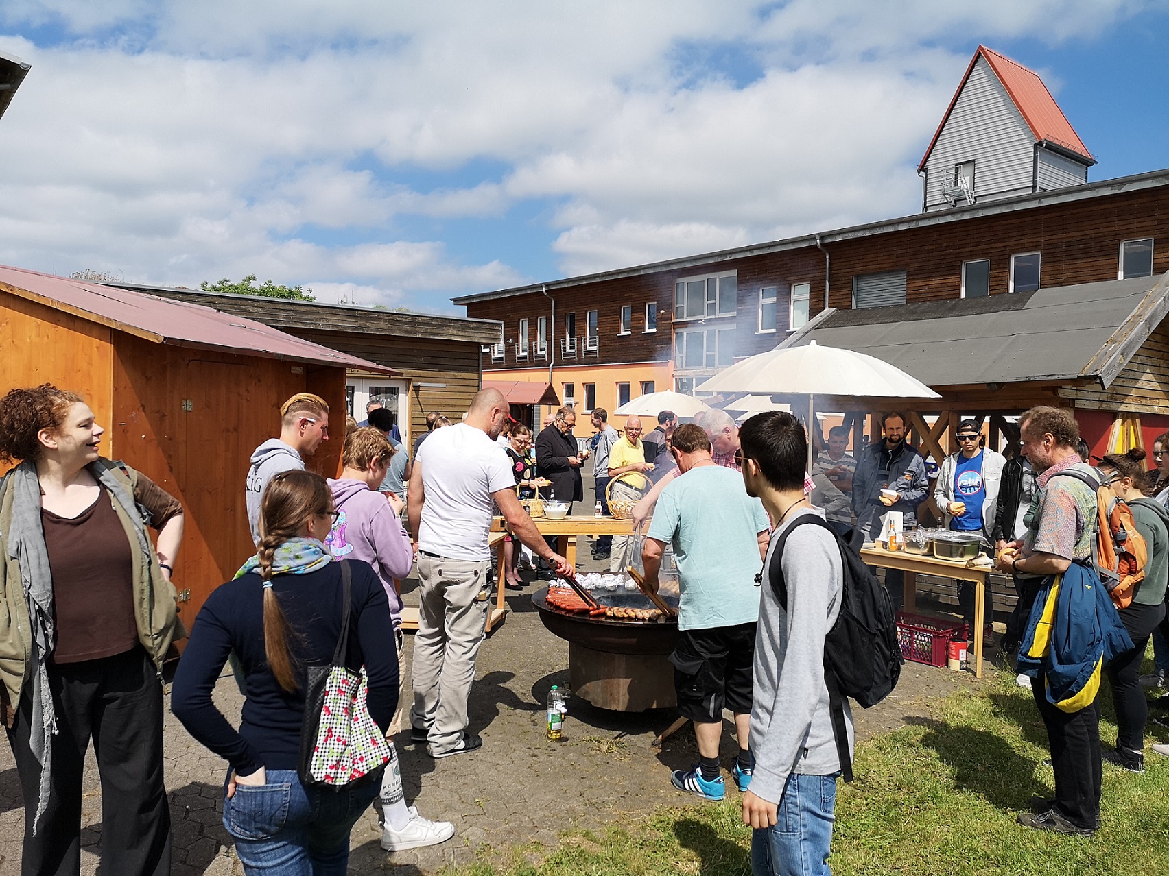 Nach dem Gottesdienst wurde noch bis in den Nachmittag das alljährliche Sommerfest der Jugendwerkstatt gefeiert. Die Gäste vergnügten sich bei zahlreichen Aktivitäten wie Rikscharundfahrten, Dosenwerfen, Tischtennis oder Sjoelbak. Ein Highlight des Programms war die Gesangseinlage einer Teilnehmerin des Q&B-Programms, die gemeinsam mit Paul Berger, Leiter des Musikangebots, ein Lied von Yvonne Catterfeld darbot. Für das leibliche Wohl sorgte das Bistroteam der Jugendwerkstatt mit selbstgemachte Würstchen vom Grill.