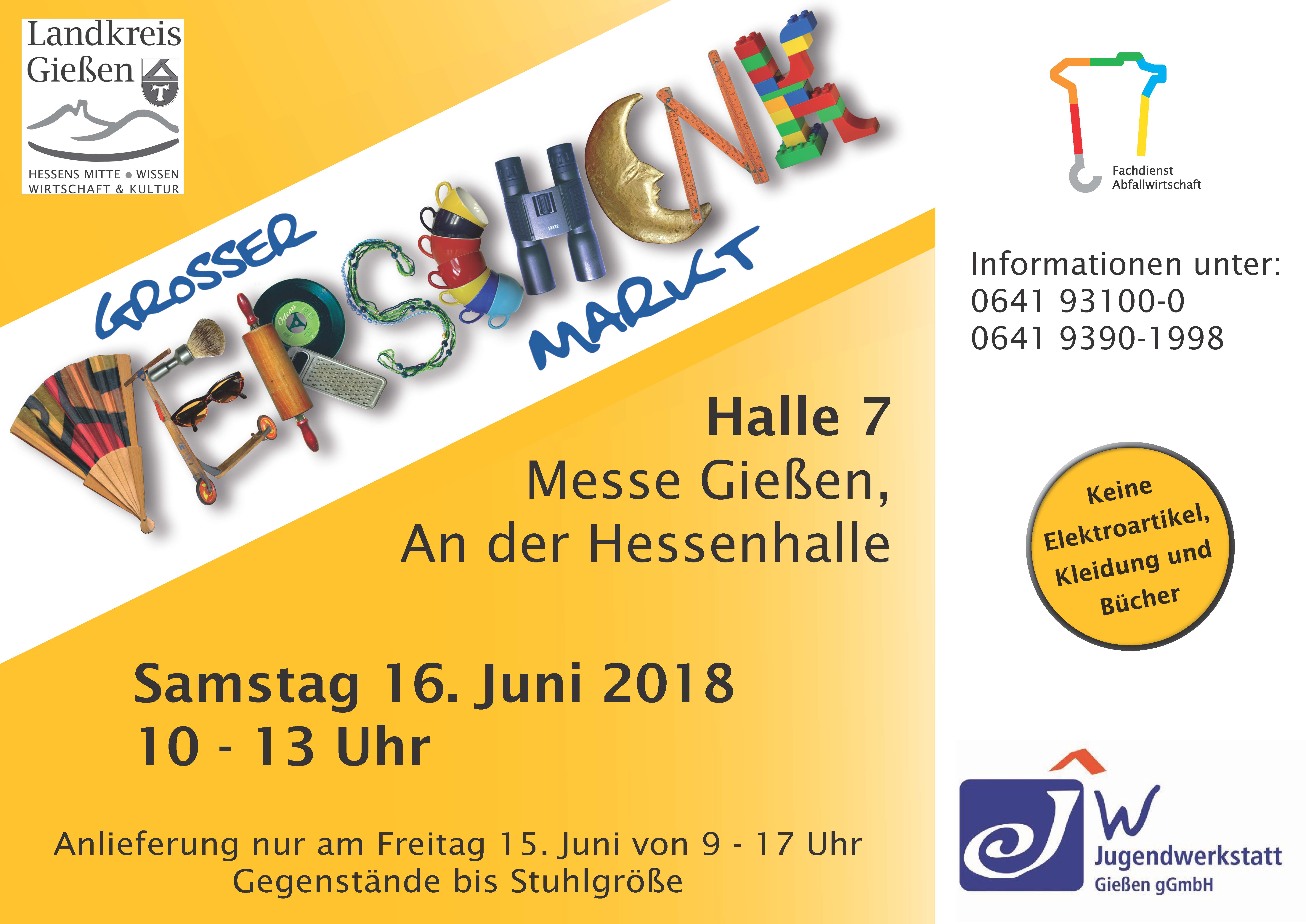 Seit vielen Jahren bietet der Fachdienst Abfallwirtschaft des Landkreis Gießen in Zusammenarbeit mit der Jugendwerkstatt einmal jährlich den Verschenkmarkt von Hausrat an. Denn die Idee, gut erhaltene und brauchbare Sachen zu verschenken, statt sie wegzuwerfen, vermindert Abfälle, spart Geld und Rohstoffe, und macht auch noch Freude.