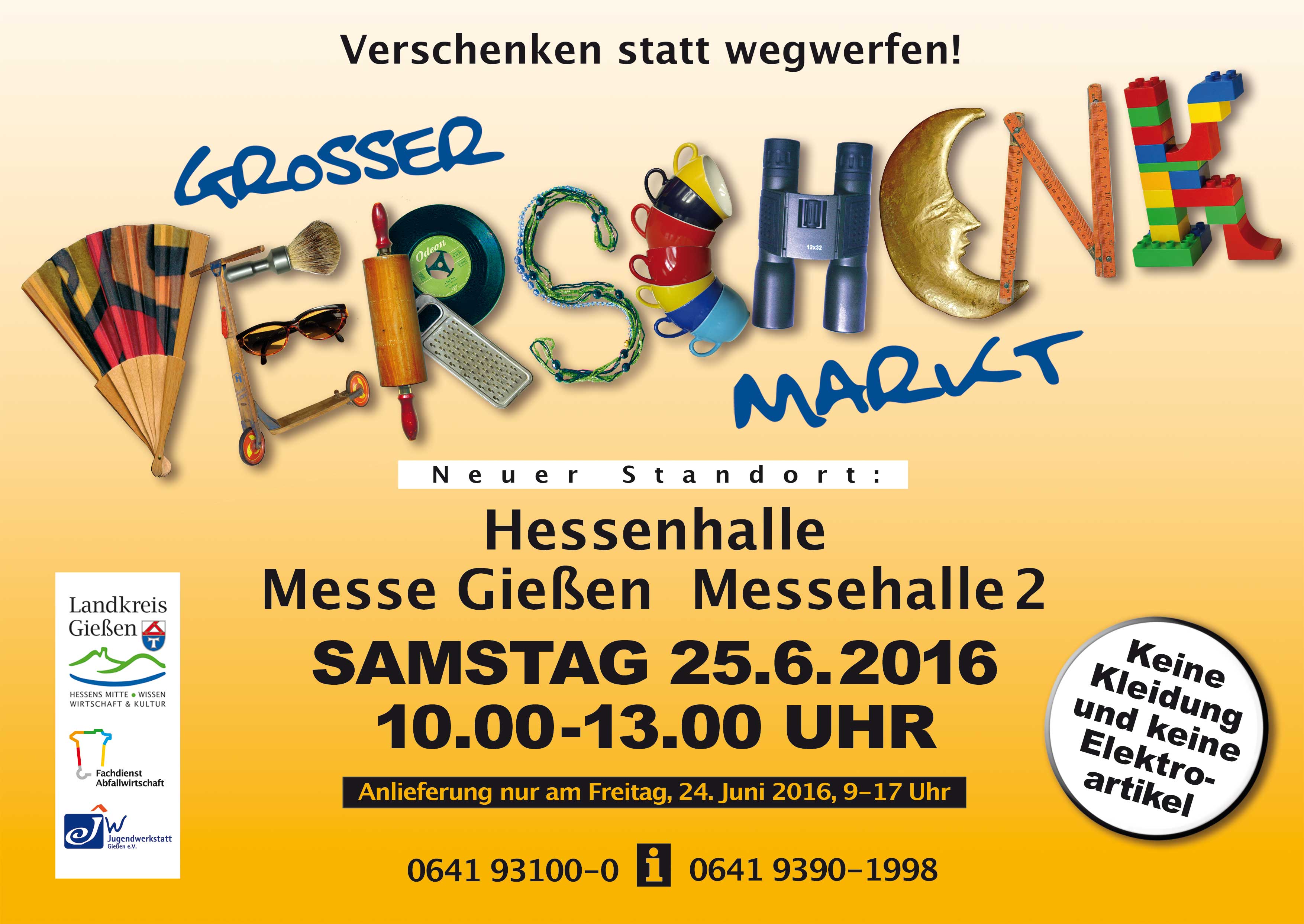 Seit vielen Jahren bietet der Fachdienst Abfallwirtschaft des Landkreis Gießen in Zusammenarbeit mit der Jugendwerkstatt einmal jährlich den Verschenkmarkt von Hausrat an. Denn die Idee, gut erhaltene und brauchbare Sachen zu verschenken, statt sie wegzuwerfen, vermindert Abfälle, spart Geld und Rohstoffe, und macht auch noch Freude.